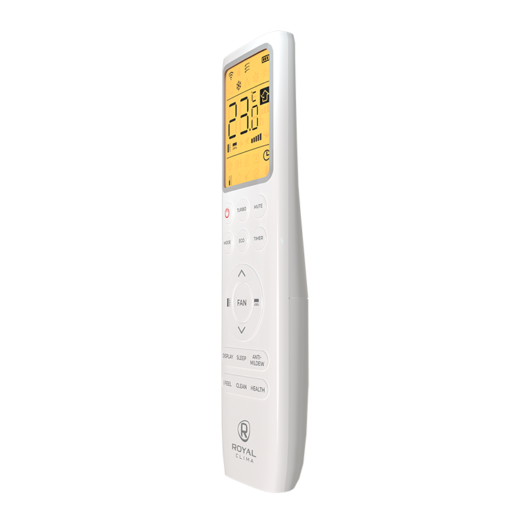 - Эргономичный пульт дистанционного управления с интуитивно понятным управлением и яркой подсветкой дисплея позволяет легко задать необходимые параметры работы сплит-системы.